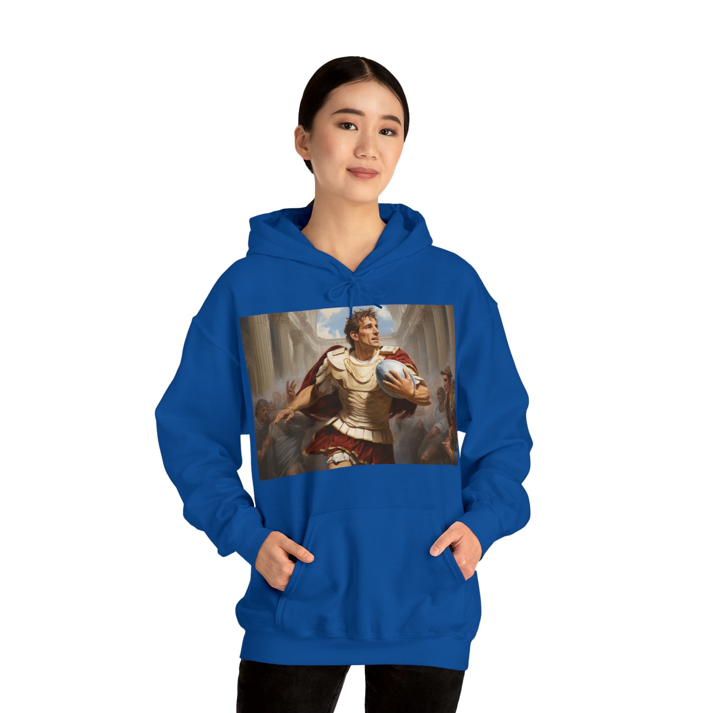 This unisex heavy blend hooded sweatshirt is relaxation itself. Made with a thick blend of cotton and polyester, it feels plush, soft and warm, a perfect choice for any cold day. In the front, the spacious kangaroo pocket adds daily practicality while the hood's drawstring is the same color as the base sweater for extra style points.